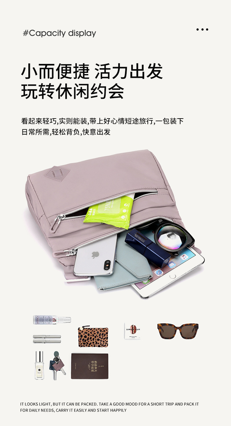 「WR-204」F22.11 跨境新款女士大容量單肩包輕便尼龍布斜挎包日常休閒通勤女包包